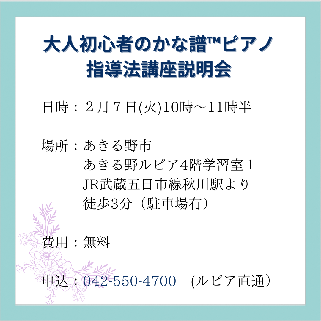 かな譜™️ピアノ 大人初心者指導法講座説明会のお知らせをさせて頂いたところ