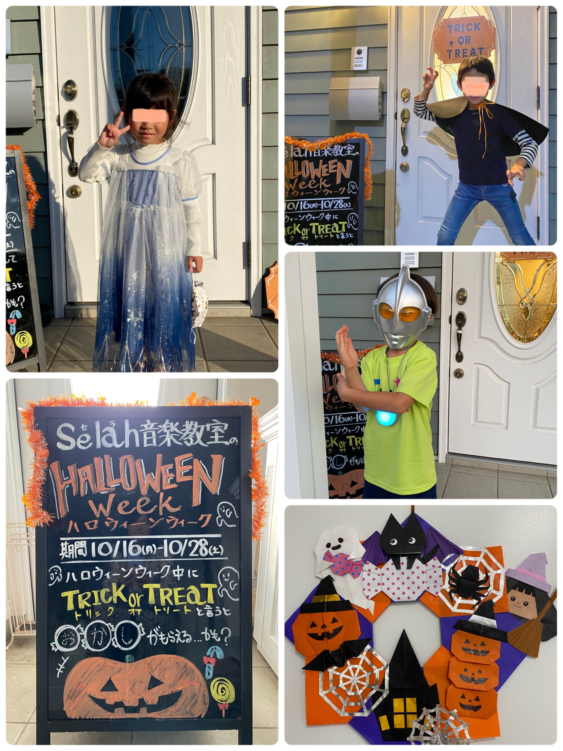 2023.11.3 イベント報告 今年も楽しみました🎃Selah音楽教室のハロウィン週間 こんにちは。 Selah音楽教室 代表の原嶋です。 『何か1つハロウィングッズを身に付けてたらお菓子がもらえる』 として始まった、Selah音楽教室のハロウィン週間。 毎年楽しみにしてくれているのは子ども達だけではなく お母さんも楽しみにして下さり、年々本格派衣装が増えて驚きました笑 その内「欽ちゃんの仮装大賞」みたいになるのかしら笑 今年の様子を、ご覧ください🎃 BACK ALL NEXT
