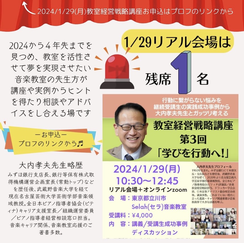 さて、1月29日に、大内孝夫先生による『教室経営戦略講座』が